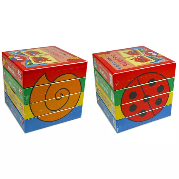 Dacă îţi plac personajele din povestea Bogyó şi Babóca, atunci acest joc de puzzle este făcut pentru tine. Adaptată la abilitățile celor mai mici, cei mici trebuie să rezolve imagini din patru piese cu personajele bine-cunoscute. Cutia conține șase personaje principale ale seriei: Bogyó, băiatul melc, Babóca, fata buburuză, Pihe, fata molie, Baltazar, albina, Vendel, gândacul cerb și Gömbi, gândacul de flori. Puzzle-ul ajută copii să familiarizeze și să joace cu culorile și să dezvolte abilitățile vizuale.