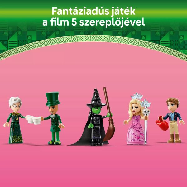Jucărie fantasy pentru copii de 9 ani și mai mari cu 5 minipăpuși LEGO® Wicked – Include personajele Glinda și Elphaba, The Wizard, Madame Morrible și Fiyero, precum și o scenă din Orașul de Smarald