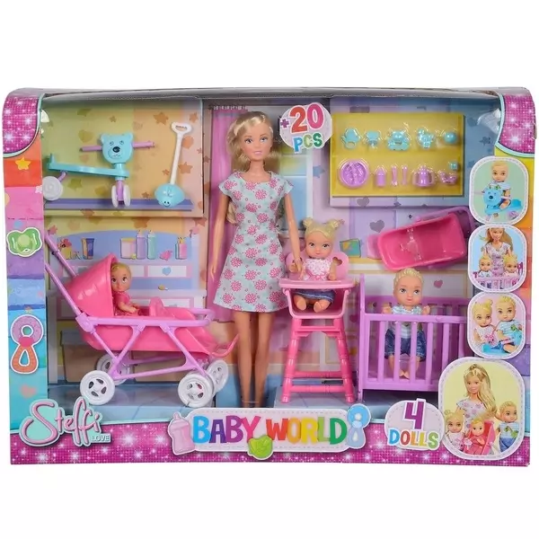 Păpușa Steffi Love cu 3 bebeluși este un set uriaș plin de nenumărate accesorii! O alegere excelentă dacă dorești un set fetișcană cu păpuși bebeluși! Setul include, de asemenea, un cărucior, un scaun înalt, un pătuț, 2 role, scutece, un coșuleț și vase. Setul cuprinde păpușa Steffi Love cu 3 bebeluși. Dimensiuni de ambalare: 46 x 12 x 32 cm.